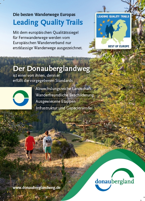 In the fall of 2018, the Donauberglandweg was certified by the European Ramblers’ Association and the German Hiking Association for the first time as a “Leading Quality Trail – Best of Europe” award. It has thus been promoted to the European premier class of hiking trails. The award will be presented for the third time in January 2025.